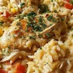This casserole balances convenience, flavor, and comfort. It uses mostly pantry staples and a couple of short-cuts (shredded cooked chicken and a can of cream soup) to make a deeply satisfying meal with very little fuss. It’s also forgiving: swap in rotisserie chicken, use low-sodium broth, or add extra veggies for color and nutrition.