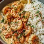 This recipe shows how to make creamy garlic butter shrimp served with rice. It uses common ingredients and takes about 20 minutes active time. The shrimp cooks fast and the sauce is smooth and rich. The meal works for weeknights or a small dinner.