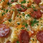 I make this Crockpot Pierogi Casserole with Kielbasa when I want a hands-off, comforting meal that still feels a little special. It layers frozen potato-and-cheese pierogi with sliced kielbasa, sauerkraut and a creamy cheddar sauce, then slow-cooks until everything is melded and bubbly. It’s ideal for lazy weeknights, potlucks, or when you need a crowd-pleasing dish with minimal babysitting.