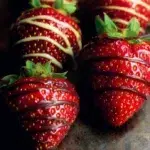 - Allow the decorated strawberries to set on parchment paper for a few minutes until the chocolate hardens.