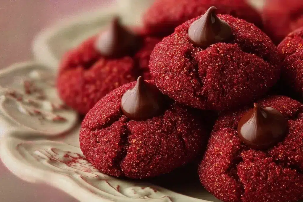 For a quick, pretty holiday cookie with a chocolate center, these Hershey’s Red Velvet Blossoms work great. If you want another easy Red Velvet cookie idea and more tips, see this helpful guide: Easy Hershey’s Red Velvet Blossoms Cookies – Lifestyle of a Foodie.