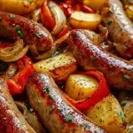 I still make this one when I need a no-fuss family dinner that feels homemade without a lot of babysitting. Roasted sausages, bell peppers, onions, and crispy potatoes come together on one pan in about half an hour—charred edges, savory juices, and the kind of comfort food that clears plates fast. If you’re feeding kids, pair it with a playful dessert like Snowman Poop: a Playful Winter Treat for easy crowd-pleasing finishers.