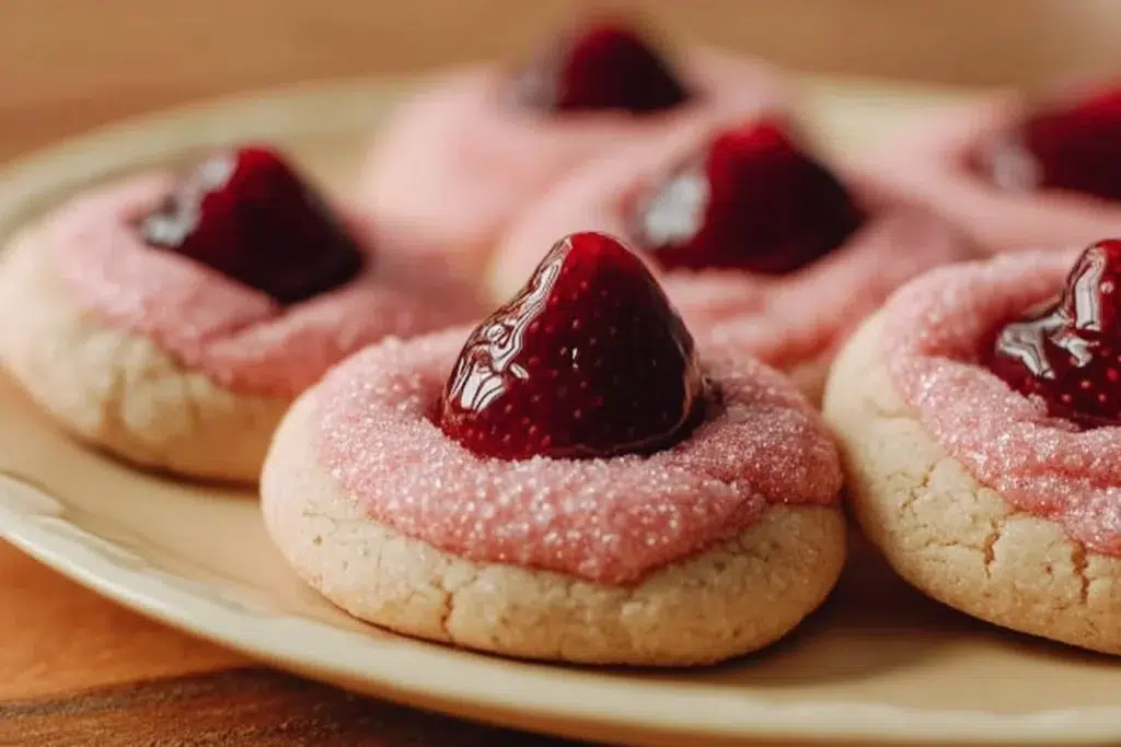 This recipe gives you soft, sweet cookies with a pink strawberry taste and a chocolate kiss in the center. They look nice for snacks, parties, or a simple treat. The cookies use a common boxed strawberry gelatin for color and flavor, so they are easy and fun to make.
