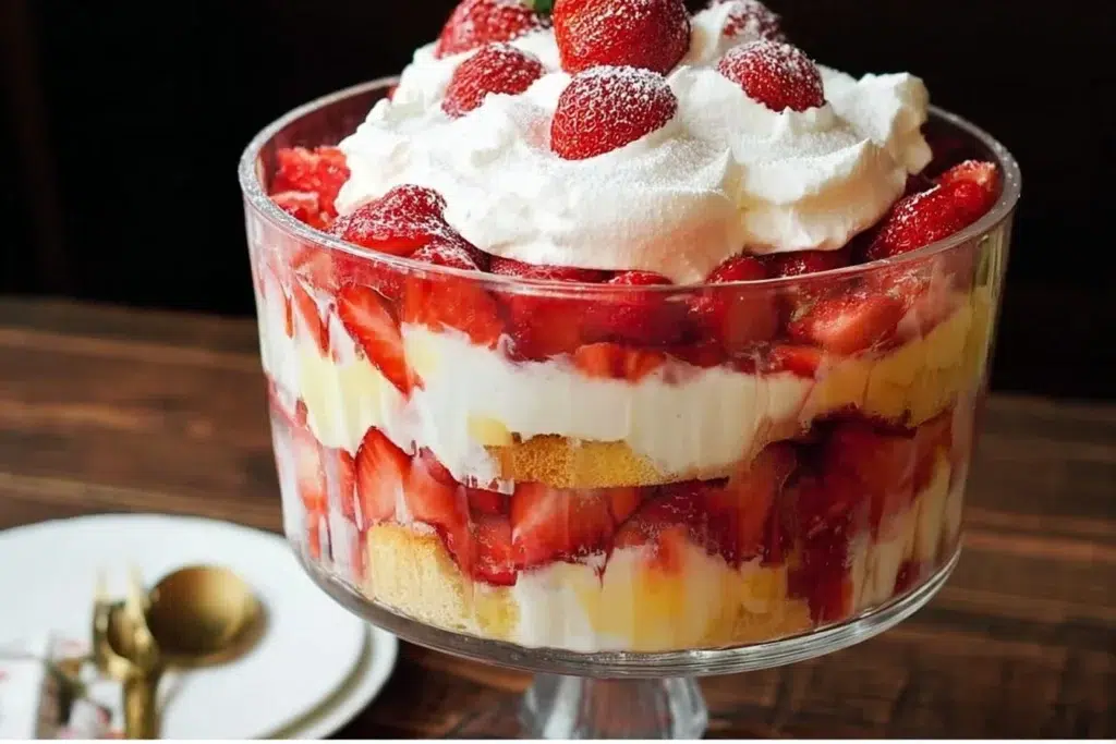 This trifle gives you big payoff for little work. It uses store-bought shortcake cups and instant vanilla pudding so you skip long baking and still get a layered dessert that photographs beautifully for Pinterest. The macerated strawberries add natural sweetness and a glossy look that draws the eye. This recipe scales well for a crowd, so it works for family dinners, potlucks, or a simple weeknight treat. It also uses basic ingredients most families keep on hand, which saves time and reduces food waste. For anyone building recipe content or looking for an easy dessert that performs well in photos, this one checks boxes for speed, flavor, and visual appeal.